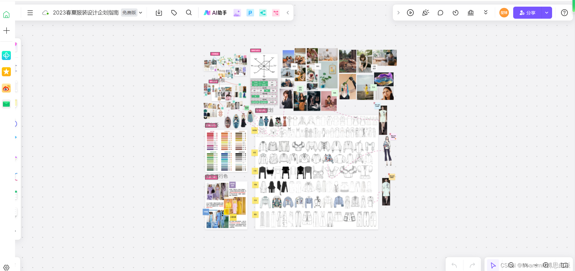 这组图是来自于boardmix社区里极具价值的服装设计资源,包含了今年流行的服装设计展示、情绪板、时尚模特服装展示等,并且还收录了大量的春夏季服装配色等,不仅能找到设计灵感,还能知晓更多的流行趋势