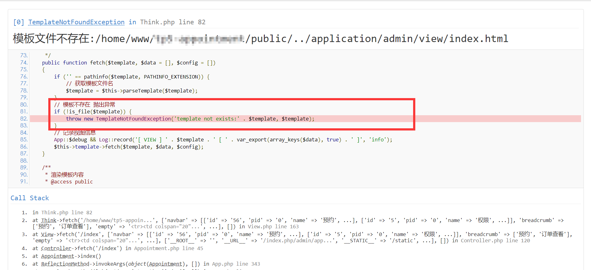 (本地没问题,服务器中)发现视图文件存在,并且单词也正确,权限也有........但是还报错下面错误信息: