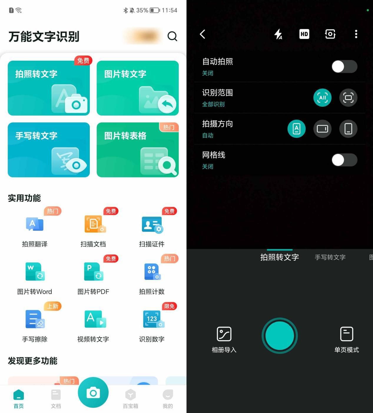 ①这是一款多功能的文字识别工具,其识别功能基于先进的OCR(光学字符识别)技术,可以通过拍照或上传图片,使用深度学习算法分析图像中的文字信息,并将其转化为数字形式,从而实现高准确率的手写文字识别。