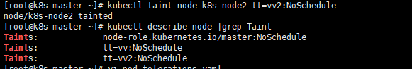 例如: kubectl taint node k8s-node1 gpu=yes:NoSchedule