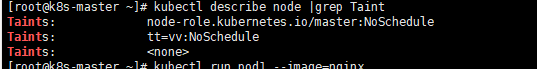 查看污点命令: kubectl describe node |grep Taint