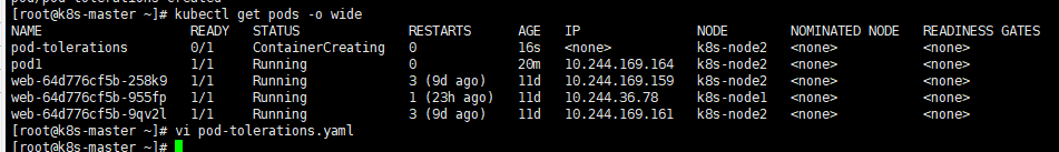 tolerations: - key: "tt" operator: "Equal" value: "vv2" effect: "NoSchedule可以看到,pod被分配到已经打了污点的node2上
