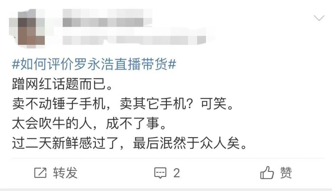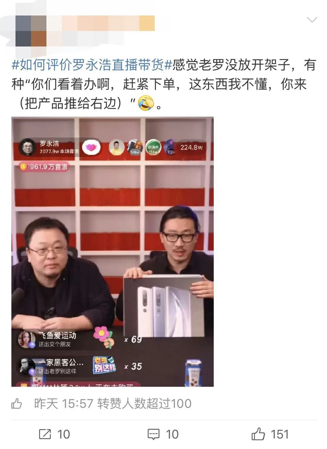 如果不了解事件全过程,只看网络舆论,我们是不是很容易以为,这是一次很失败的直播,老罗又一次不出所料的“失败”了,没有令人失望。