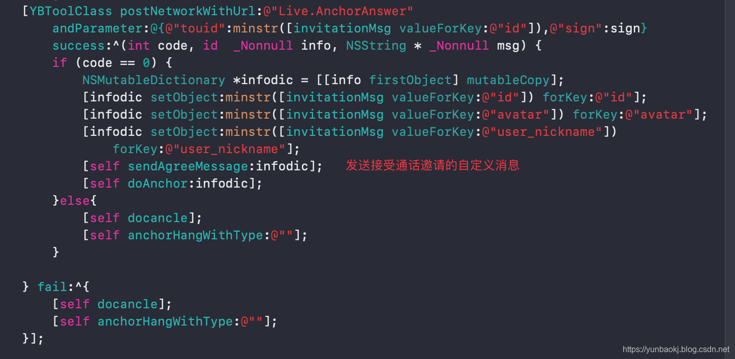 调用接受邀请的接口,获取自己的推流、播流地址,开始进入推流界面,并发送接受邀请的自定义消息,告诉对方已接受邀请,发起方收到接受方同意的消息,也开始推流。
