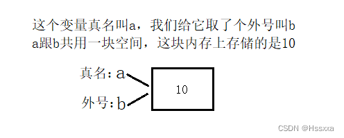 小王因经常健身每天吃八个鸡蛋,被小伙伴们调侃的取了个外号叫“八蛋”,又刚好姓王,“王八蛋”,小伙伴们每天都会问“八蛋”你今天吃八个鸡蛋了没。我们想一下,“八蛋”是不是小王,小王是不是“八蛋”。没错,引用相当于是给变量取外号,不会为这个外号另开辟内存空间来存储,而是共用一块空间。要是因给小王取了个外号就多变出一个叫“八蛋”的人那岂不荒唐了!!