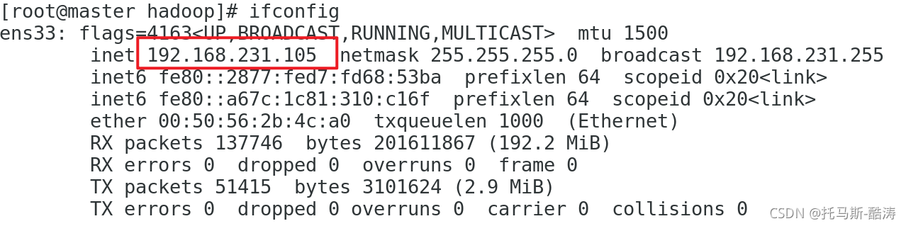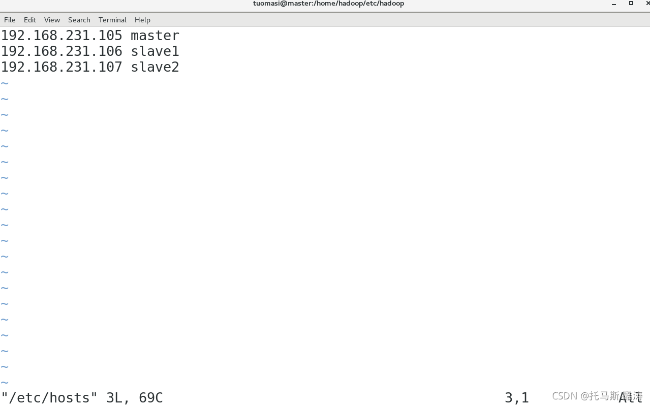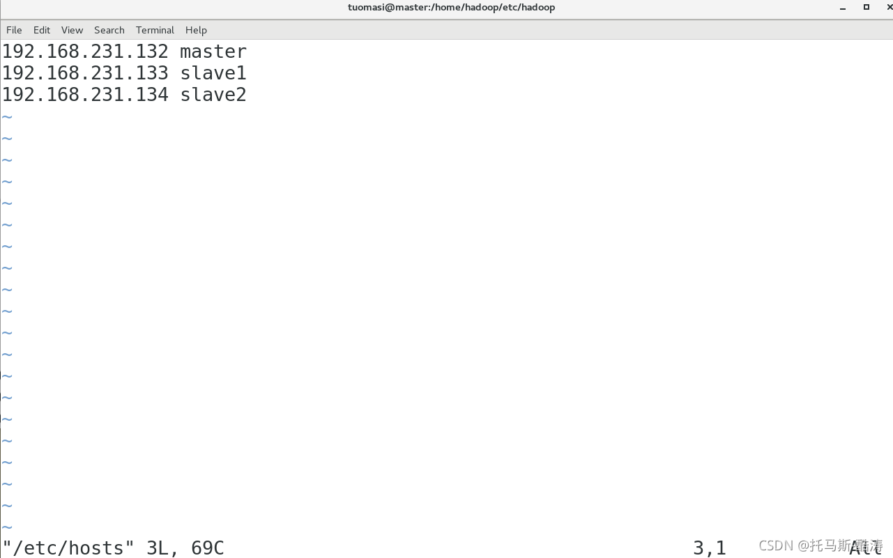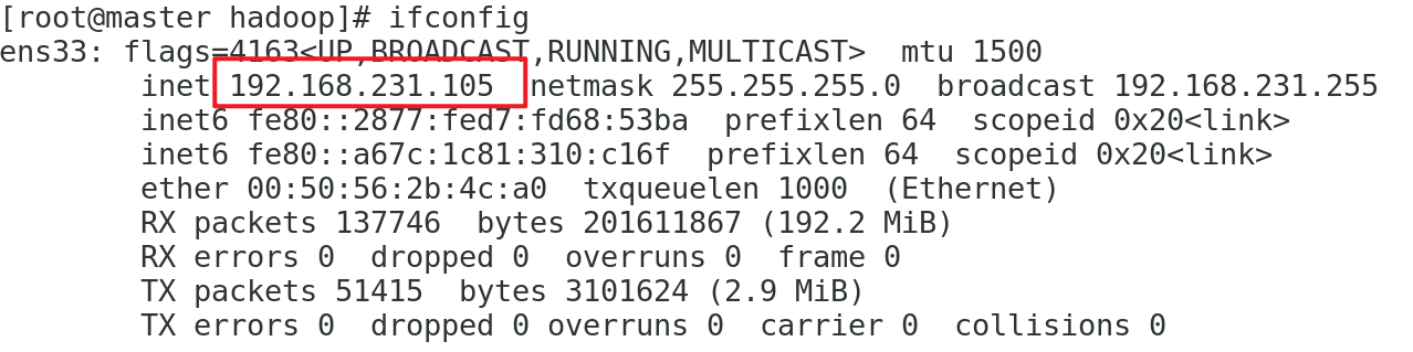 4.master机器修改为原静态IP(如果是集群的话其它slave1,slave2机器全部修改hosts文件)