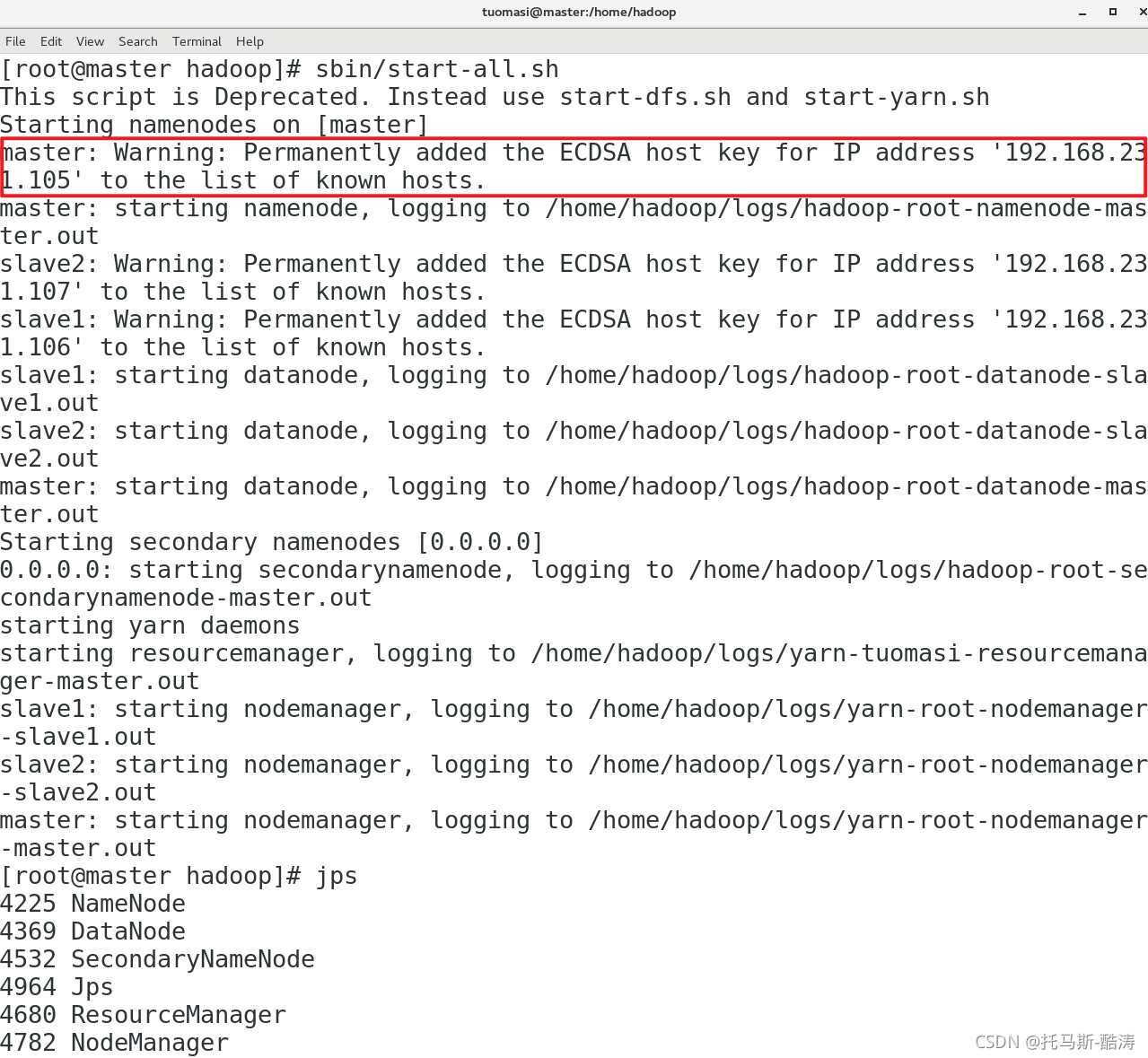 注:图中的警告为:将 IP 地址“192.168.231.107”的 ECDSA 主机密钥永久添加到已知主机列表中。