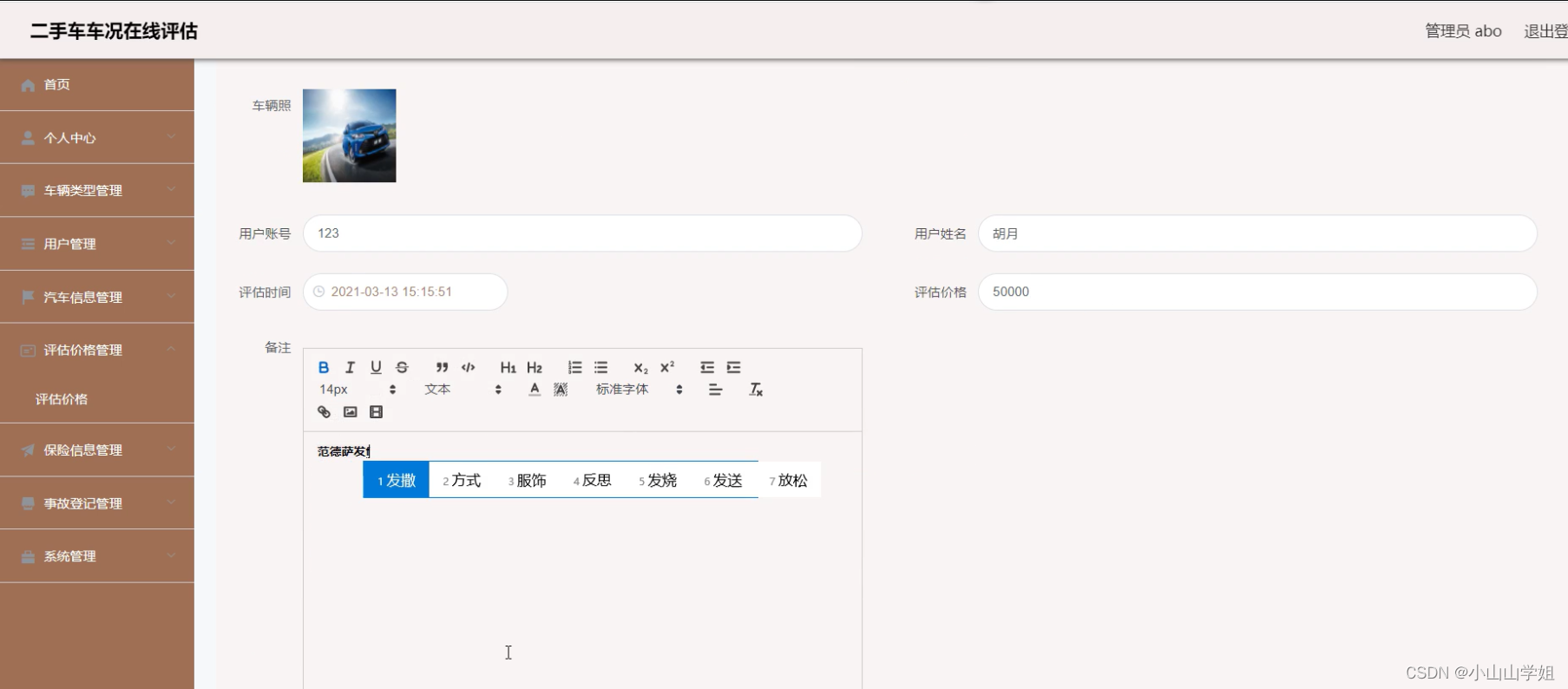 Java毕设项目二手车车况在线评估(java+VUE+Mybatis+Maven+Mysql)