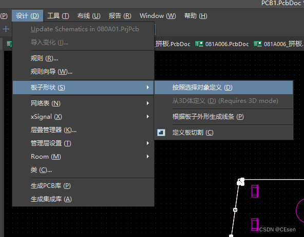 第五步,依次点击 设计-板子形状-按照选择对象定义。