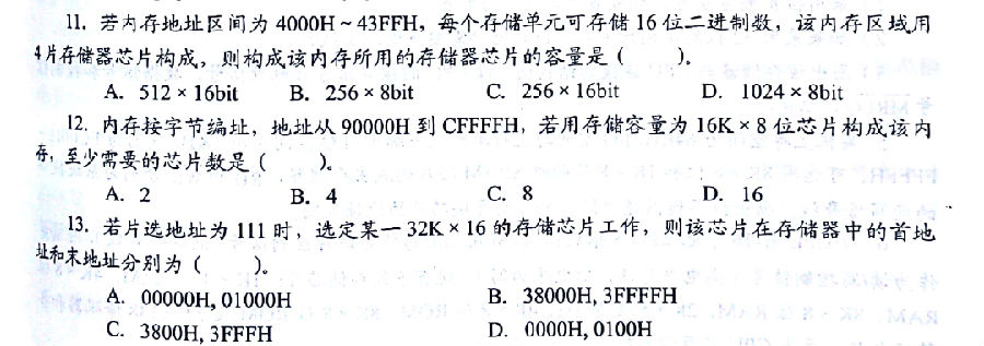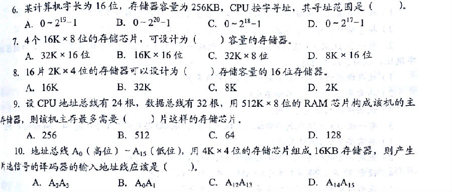 用1024×1芯片构成8KB存储器,CPU提供地址线A0~A15,其中A0为高位,则加到各芯片地址端的地址线是A0~A9。错