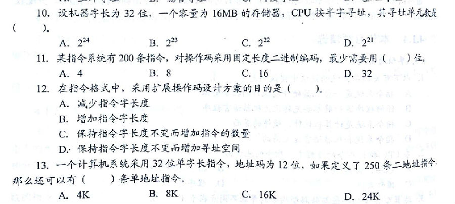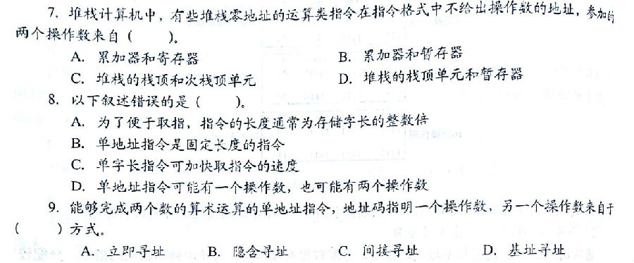 其中零地址指令M种、一地址指令N种,则二地址指令16-M-N种。 -
