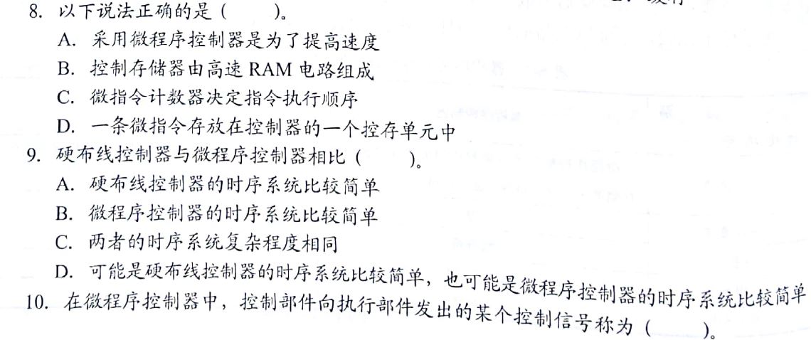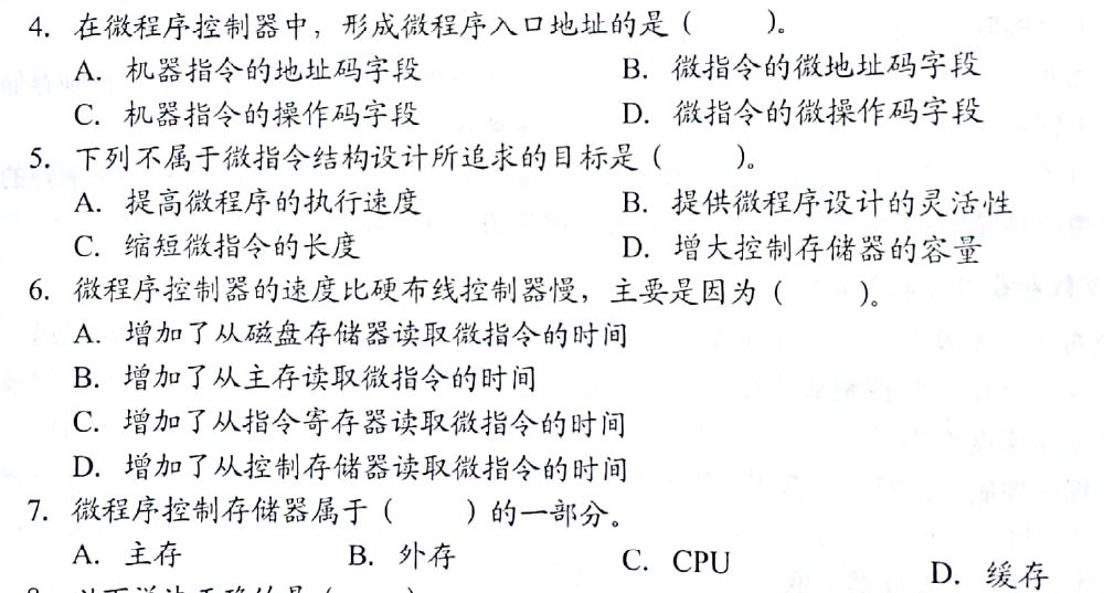 (2)控存容量即存放的微指令数量:微命令地址8位,故cm容量为28×28位=7168位。