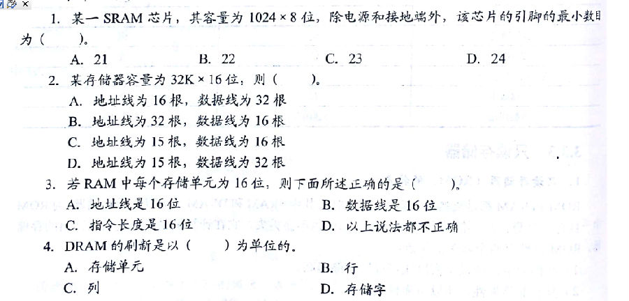 一台计算机有32MB的主存,机器字长为4字节。那么访问存储器需要( )根地址线。