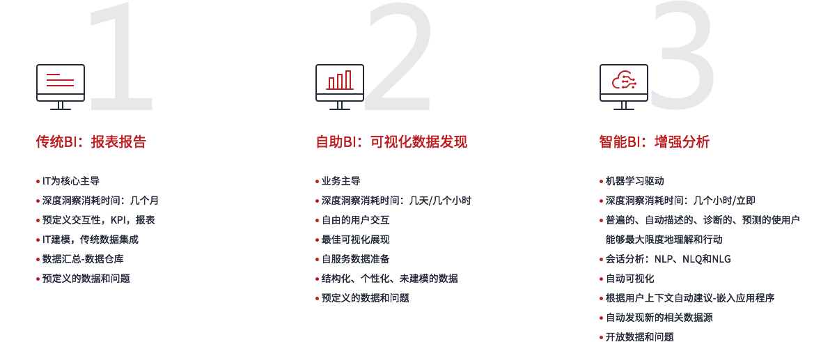 从描述业务和分析原因的传统BI和自助BI,到预测趋势的智能BI