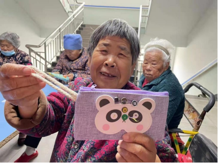 在与老人们的交流中,社工注意到,大部分的老人有老年手机,但出门经常不带,问及原因,她们表示,口袋浅,手机容易掉出来,怕把手机摔坏了,所以经常出门的时候把手机放家里。可是,不带手机出门,儿女容易联系不到老人,让人担心。所以,社工围绕这一问题开展了第四节小组活动——“创意钱包”,老人们自己打造小钱包,出门的时候可以用来放手机、放零钱。