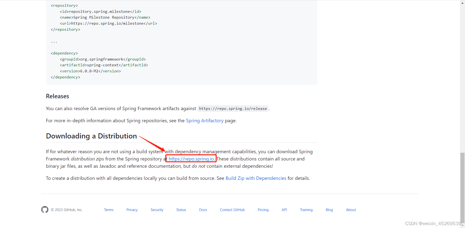 在GITHUB页面往下拉,找到Access to Binaries里的 Spring Framework Artifacts,点击进入。