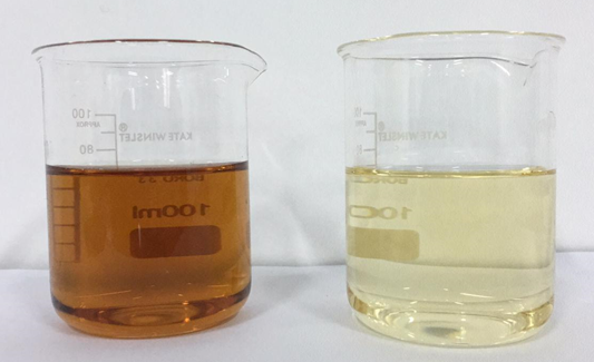 图1 原液(左)、处理液(右)外观图