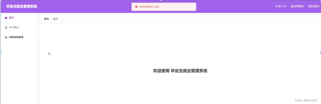 企业登录进入系统可以查看首页、个人中心、招聘信息管理等信息进行详细操作,如图5-15所示。