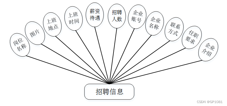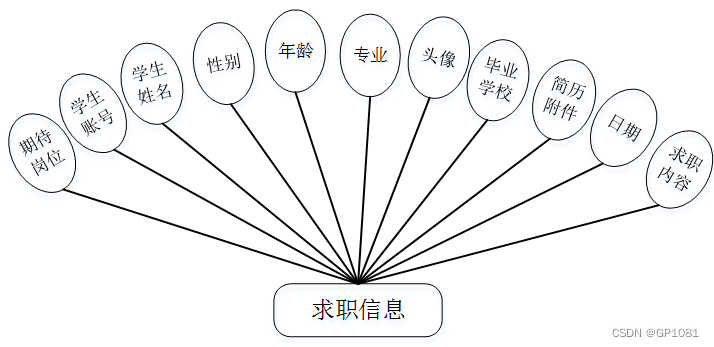 通过毕业生就业管理系统的功能进行规划分成几个实体信息,实体信息将通过ER图进行说明,本系统的主要实体图如下: