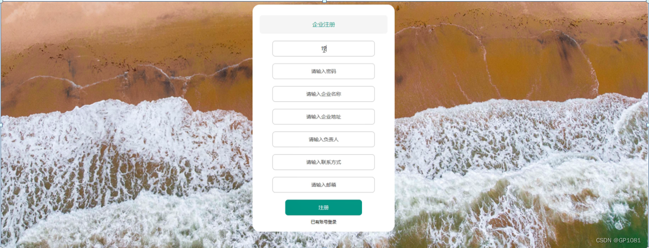 企业注册,在企业注册页面通过填写企业账号、密码、企业名称、企业地址、负责人、联系方式、邮箱等内容并提交即可进行注册,如图5-4所示。