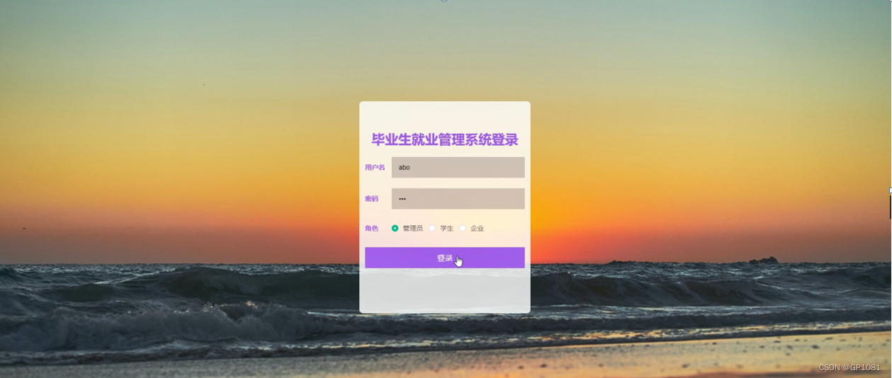 管理员登录,通过填写用户名、密码、选择角色等信息,输入完成后选择登录即可进入毕业生就业管理系统,如图5-5所示。