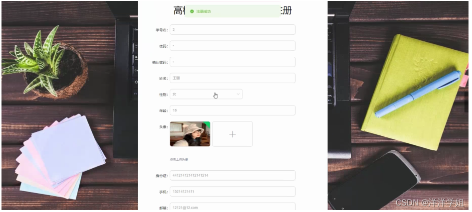 注册时将进行密码校验,若密码不一致将不能注册,以此来防止学生输入错误密码,影响体验,下面截图是学生注册成功页面,如图5-2所示。