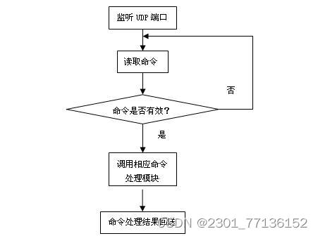 被监控端UDP端口启动成功后,就开始对该UDP端口进行监听,如果监听到有命令,就读取它,并判断命令是否有效,命令以ordername:port为格式,如果无效,返回继续读取命令,否则,调用相应的命令处理模块对命令进行处理,命令处理完后将处理结果返回给主控端。