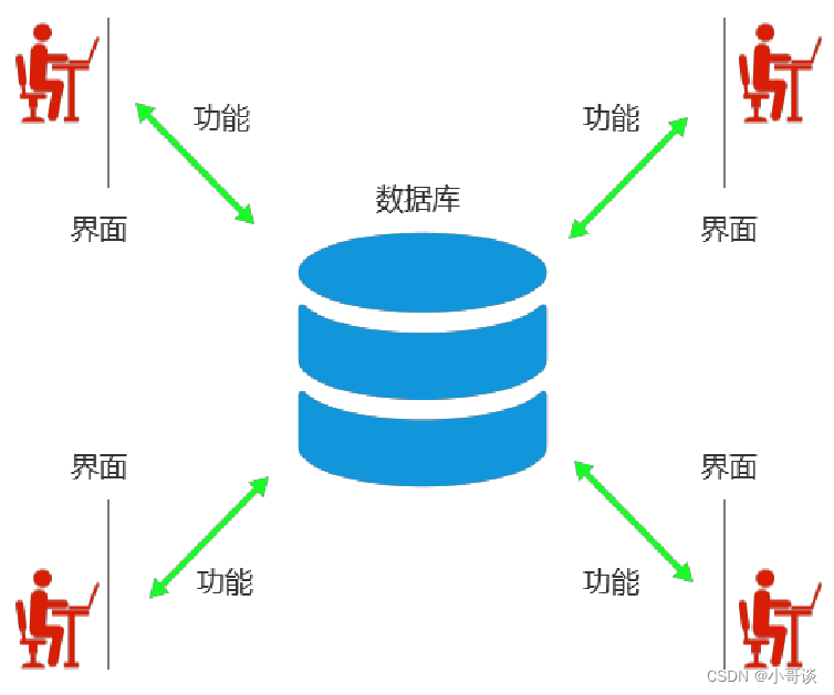 面向用户的软件功能可以这样描述其过程:用户通过界面调用软件功能,对数据库中的数据进行操作,如读出数据、新增数据、修改数据和删除数据。
