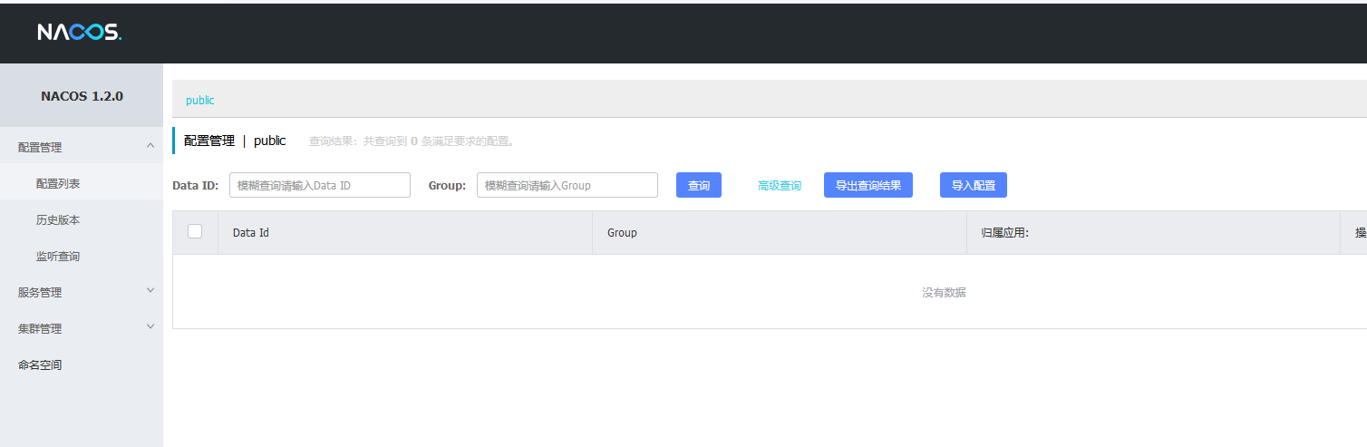 最后输入 localhost:8848/nacos 打开控制台,我们就可以看到这样一个界面