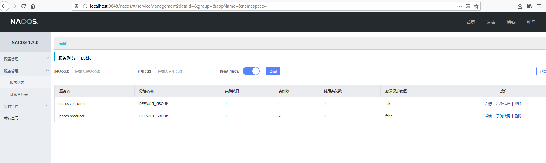 package com.wzp.nacos;import org.springframework.stereotype.Component;/*** @author zp.wei*/ @Component public class TestFallback implements TestService {@Overridepublic String hello(String name) {return "系统繁忙,请稍后再试!";} }至此,最简单的一个消费者基本上就好了,如果不是高需求,不需要进行额外的配置
