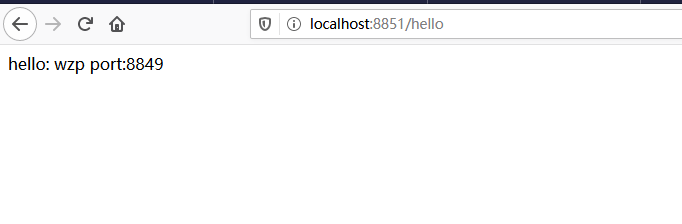 如图,我们可以发现已经被注册到注册与发现中心了,接下来我们测试一波,请求一下http://localhost:8851/hello 这个消费者的接口,结果如下