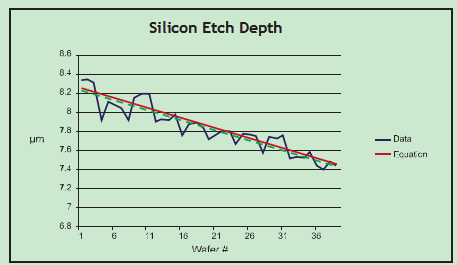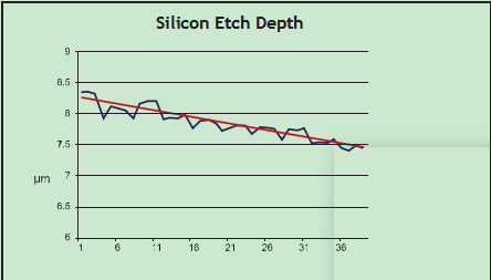 图1:恒定蚀刻时间下的硅蚀刻深度。