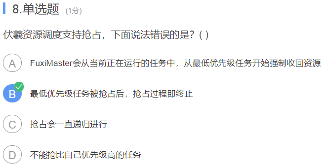 伏羲资源调度支持抢占,下面说法错误的是?( )