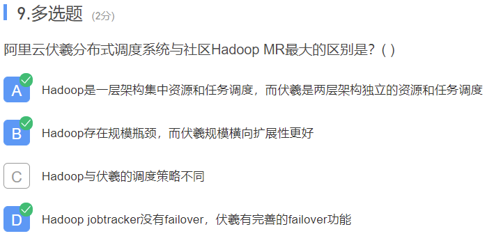 阿里云伏羲分布式调度系统与社区Hadoop MR最大的区别是?( )