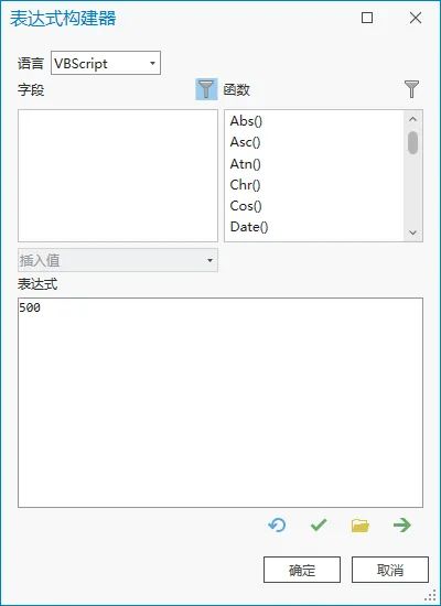 在显示的表达式构建器对话框内,设置高程值为500,如下图所示。