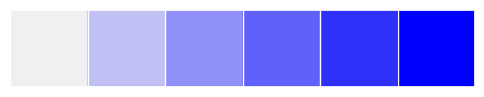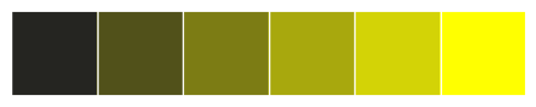 sns.palplot(sns.light_palette('blue'))sns.palplot(sns.dark_palette('yellow'))