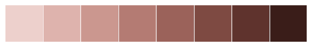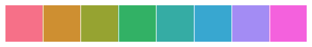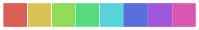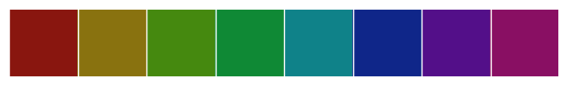 sns.palplot(sns.hls_palette(8, l=.3, s=.8)) #l控制亮度,s控制饱和度