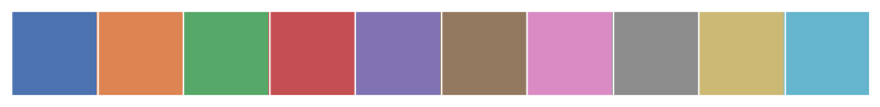 palette = sns.color_palette('bright')sns.palplot(palette)