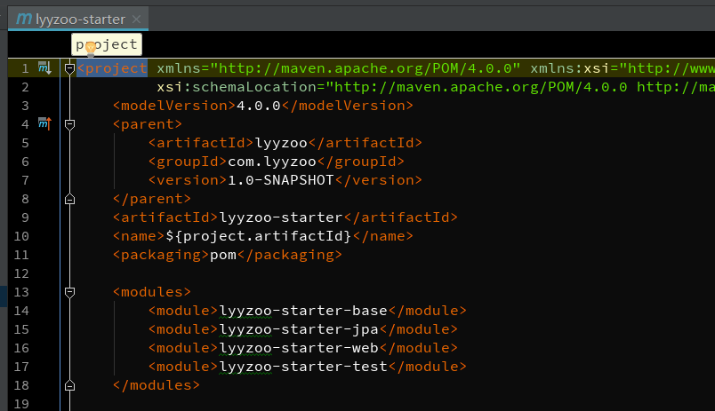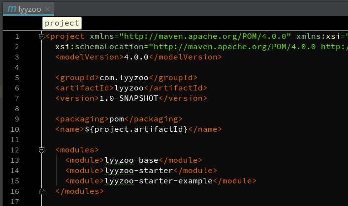 结构建好后,就需要进行一些详细的依赖配置工作了,lyyzoo 是所有模块的父类,所以在 lyyzoo 中需要添加公用的属性、依赖管理、maven 插件等。