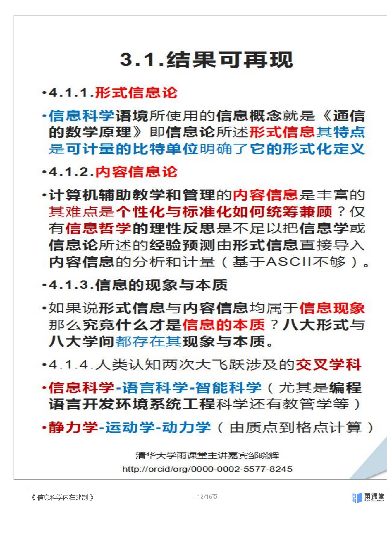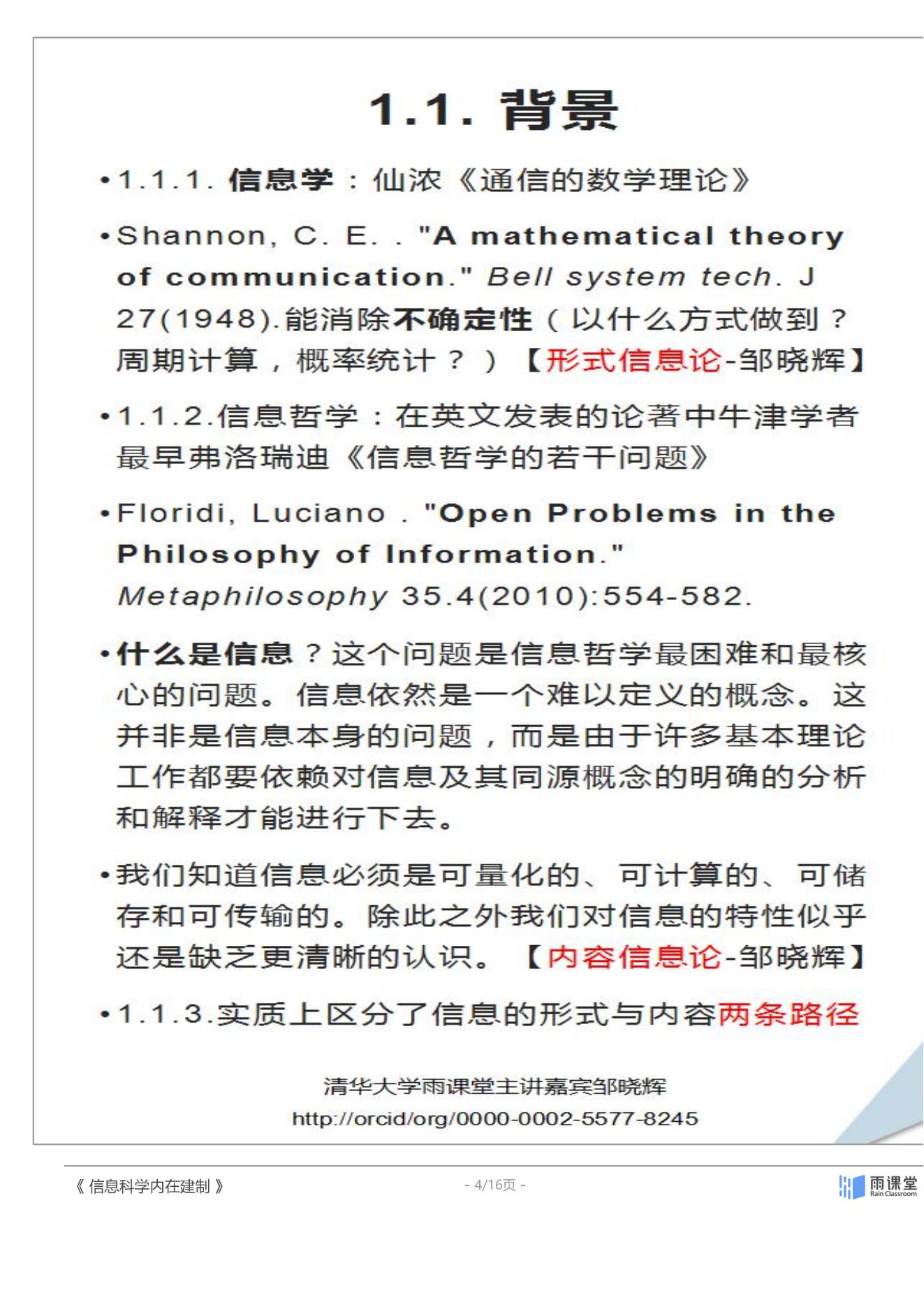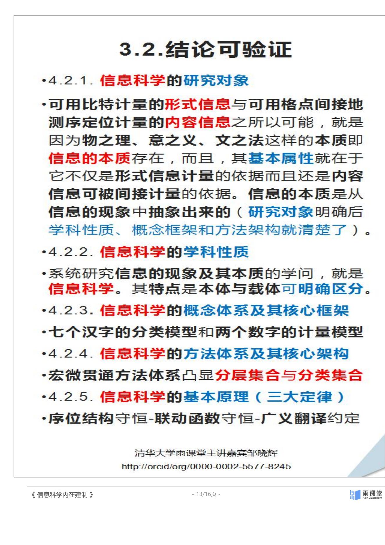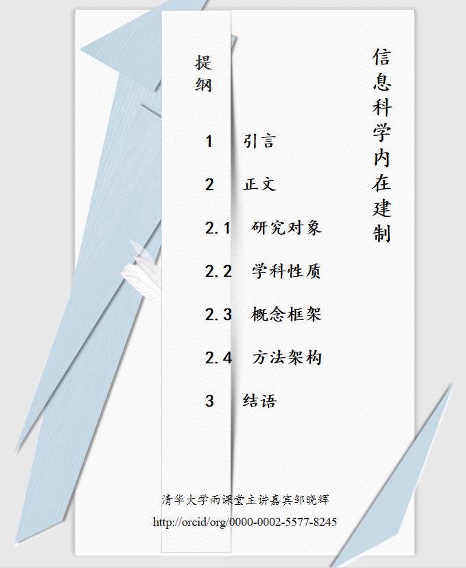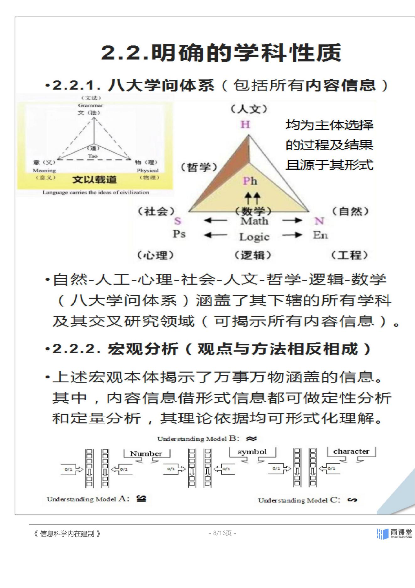 旨在信息学和信息哲学之后进入信息科学的 内在建制形式化轨道。