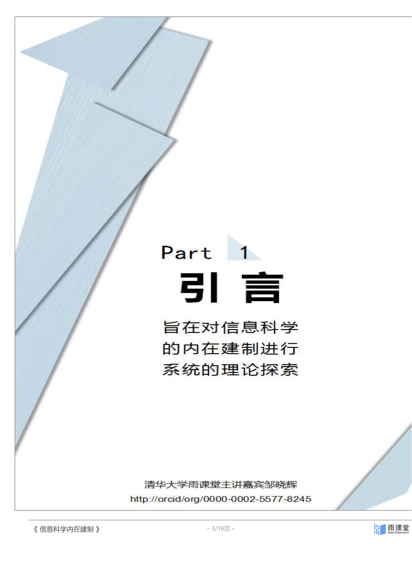 信息科学内在建制:清华大学雨课堂主讲嘉宾邹晓辉讲授公益课