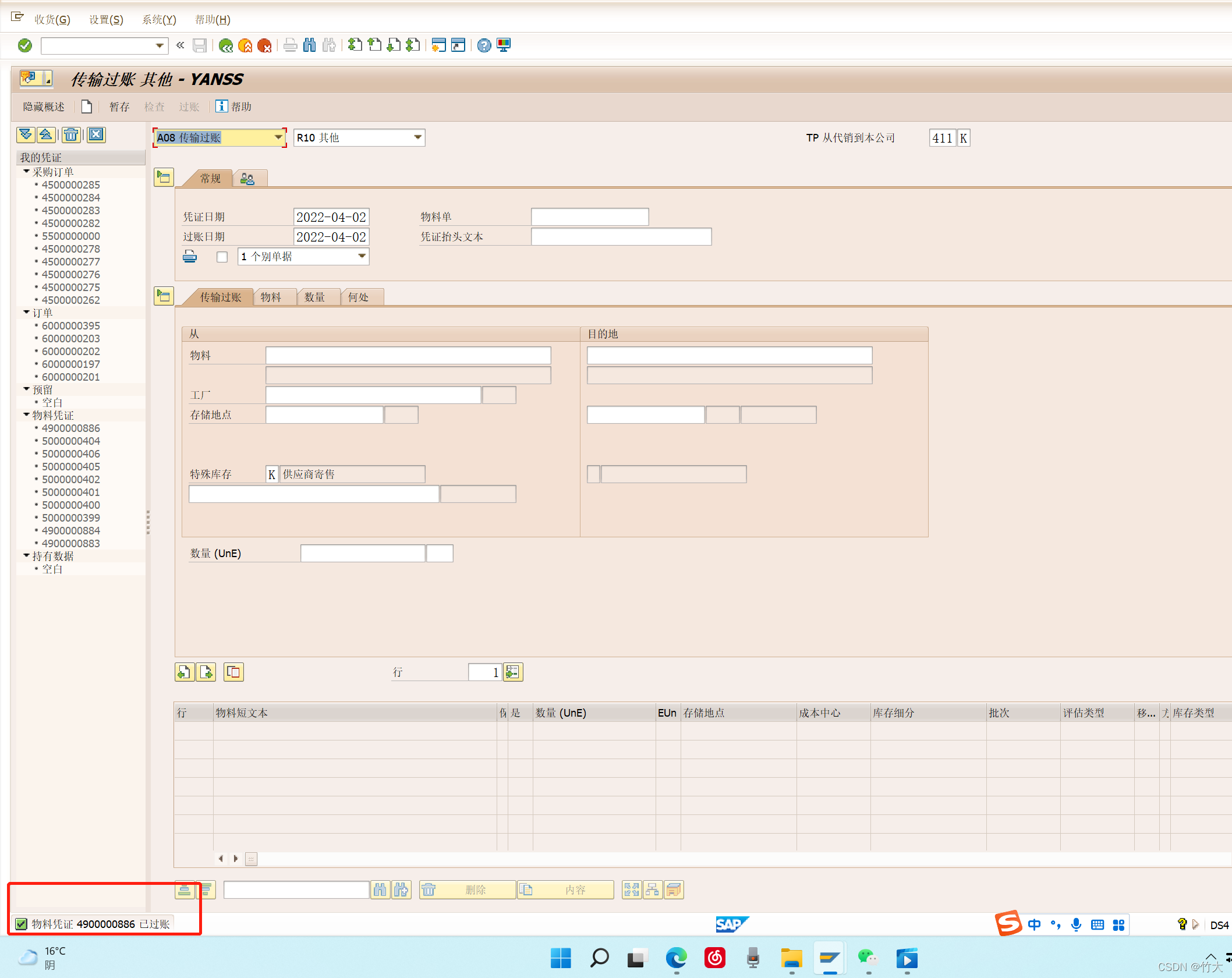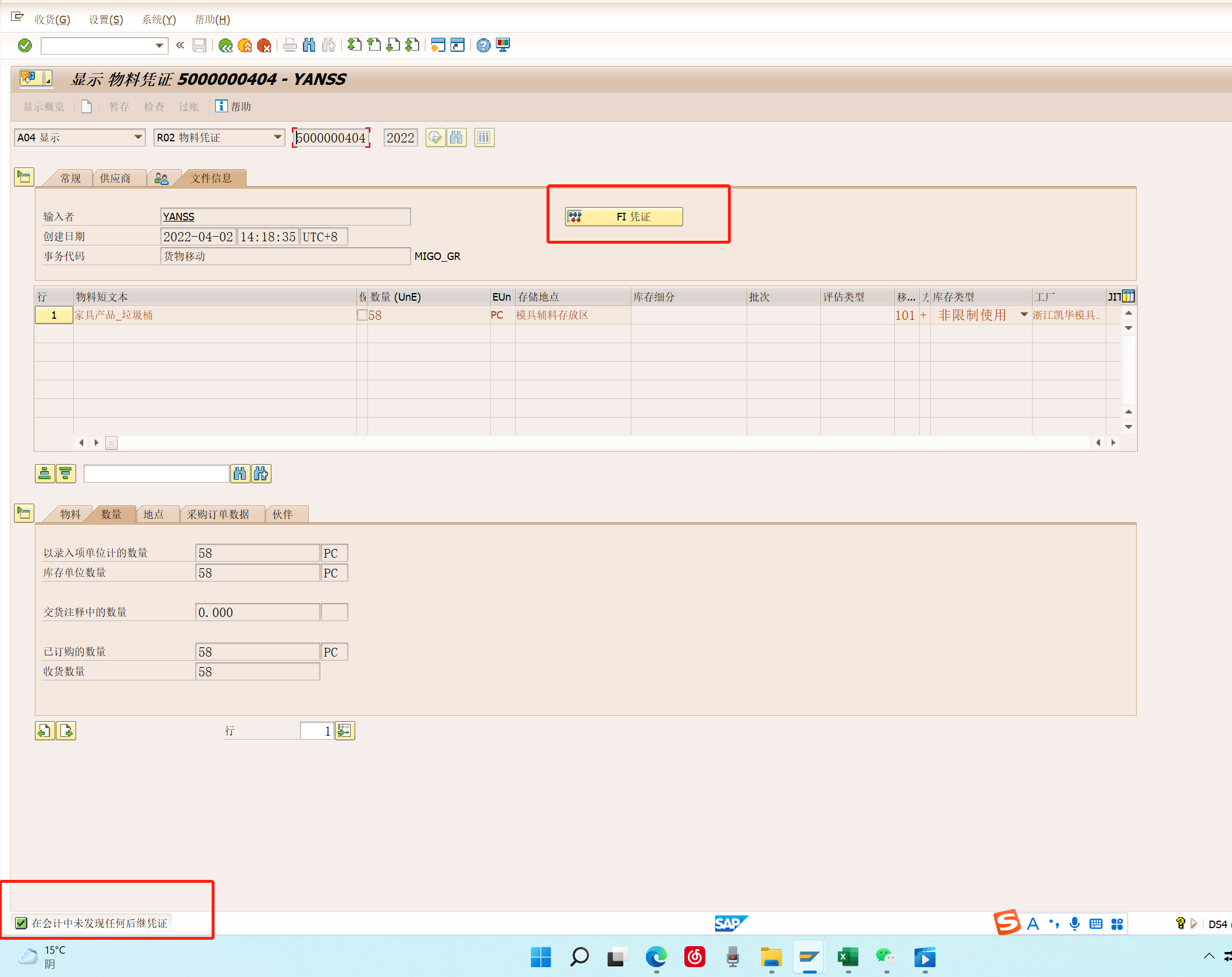 第四步:当需要消耗供应商库存的时候,后面正常过账即可。产生会计凭证。