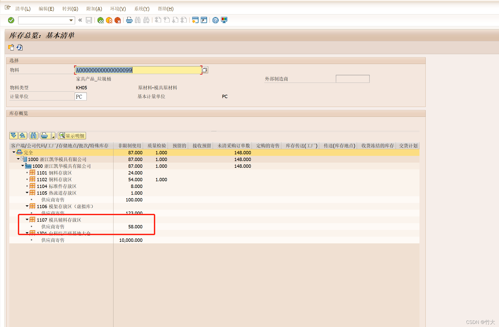 业务场景:企业为了供应链JIT的需求,降低自身的库存,让把“属于供应商”的库存,划分到自己的仓库管理中。在入库的时候,不过账。在消耗的时候过账。 移动类型是411K
