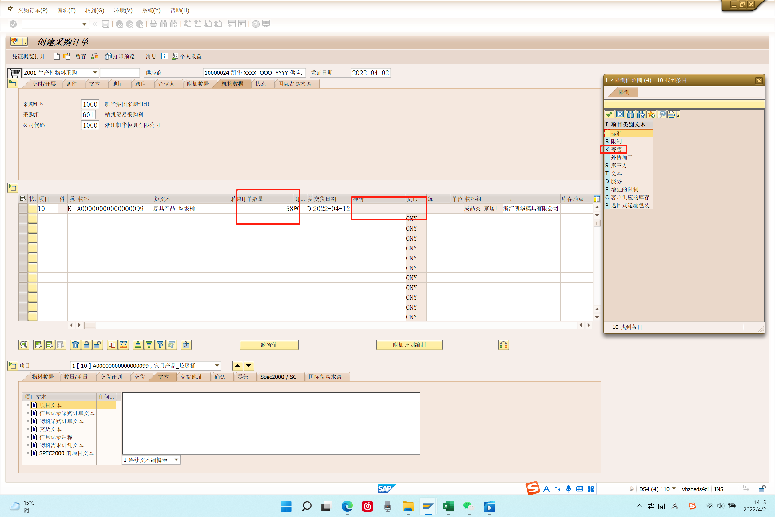 在做采购订单的时候,项目当中选择 K ; 这时候的采购价格是 空值 ,说明在入库的时候无价值结算的。