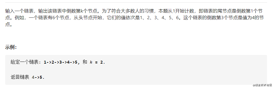 解题思路:遍历出链表长度,设置一个计数点,当找到倒数第K个节点时返回,链表(感觉走了笨办法)
