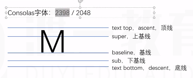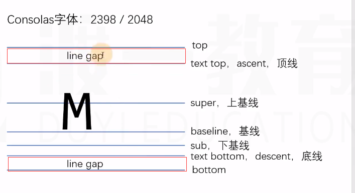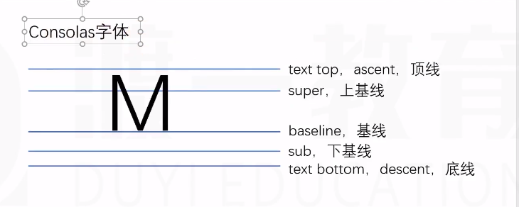 top 到 buttom , 叫做 virtual-area (虚拟区域); top和buttom 的 相对位置 不同的字体是不一样的 ,有的甚至可以 为 负数