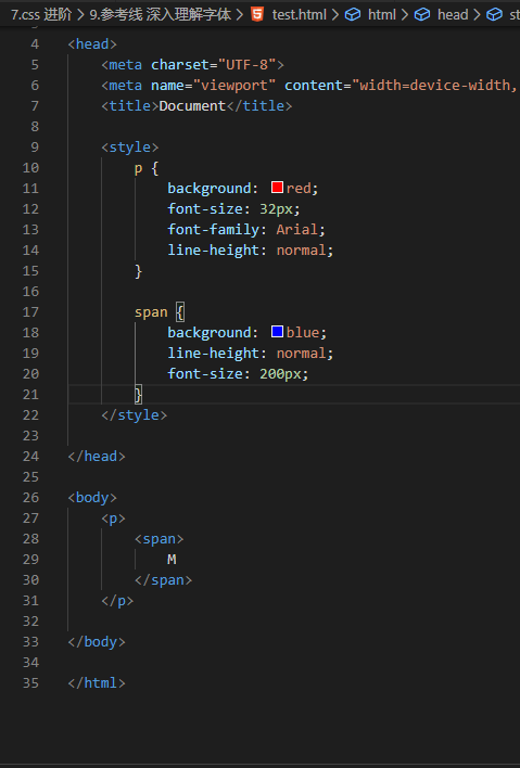 我们设置的 字体大小为 200px , 但是 实际 显示 的大小 却是 234px;