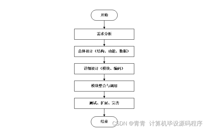 废旧物品回收APP开发时,首先进行需求分析,进而对系统进行总体的设计规划,设计系统功能模块,数据库的选择等,本系统的开发流程如图3-1所示