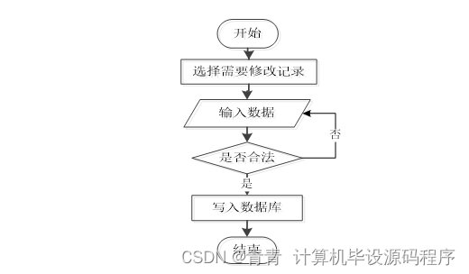 管理员可以对信息等进行修改,用户也可以对自己权限内的信息进行修改,首先进入修改信息界面,输入修改信息数据,系统进行数据的判断验证,修改信息合法则修改成功,信息更新至数据库,信息不合法则修改失败,重新输入。修改信息流程图如图3-5所示。