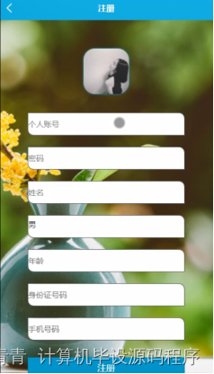 用户注册,在用户注册页面通过填写个人账号、密码、姓名、性别、年龄、身份证号码、手机号码等信息进行注册操作;如图5-2所示。
